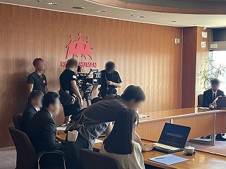 都庁の記者会見場の設定で撮影が行われました。
